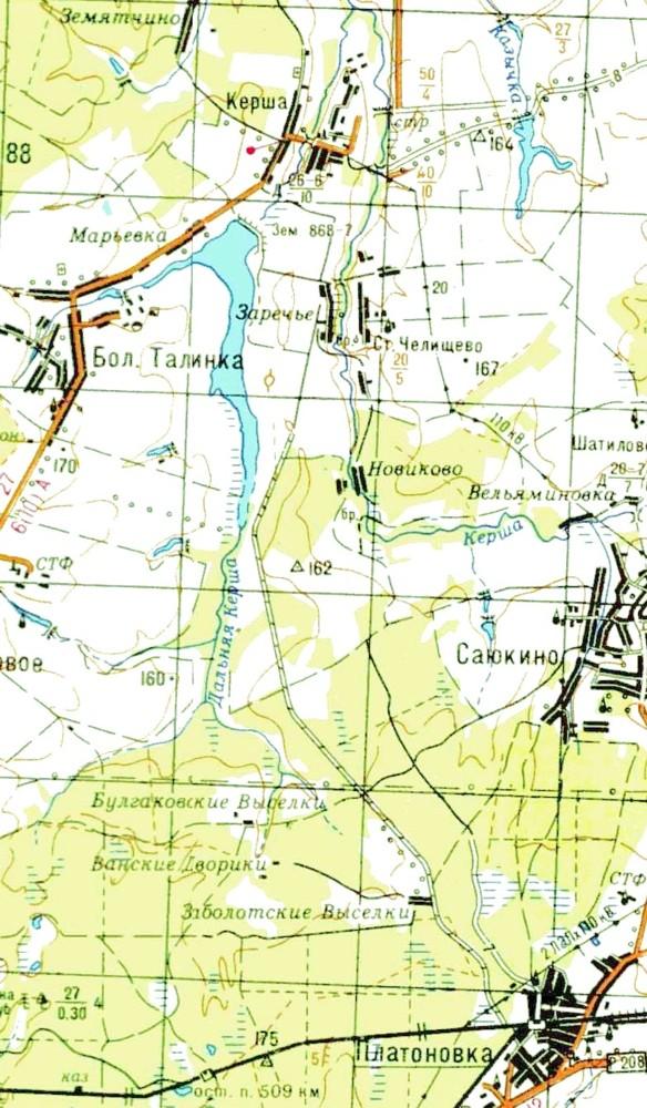 изданной в 1986 году (обозначена разобранной). Факт существования узкоколейной железной дороги в какой-либо период времени — под вопросом. Возможно, по направлению Платоновка — населённый пункт Керша пролегала железнодорожная линия широкой колеи.