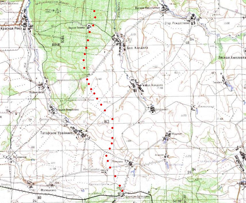 изданной в 1994 году (нанесена условно). Лесовозная узкоколейная железная дорога, пролегавшая по направлению станция Бряндино — Старомайнский лесной массив (населённый пункт Лесная Поляна) была построена в годы Великой Отечественной войны.
