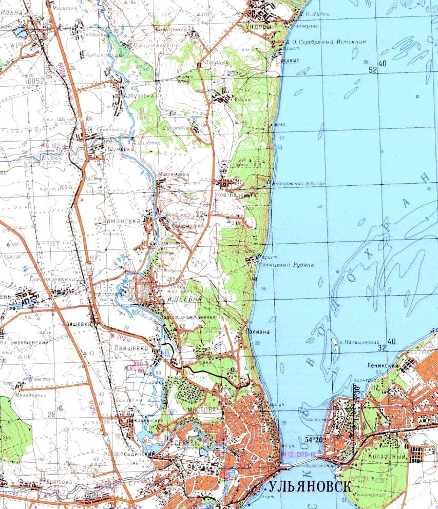 Район местонахождения узкоколейной железной дороги на топографической карте масштаба 1:200 000, изданной в 1993 году. Узкоколейная железная дорога Ульяновск — Ундоры предназначалась для вывоза сланца из сланцевых рудников. Она была построена в 1920-1922 годах, однако в связи с отказом от планов добычи сланца не начала работать и была разобрана.