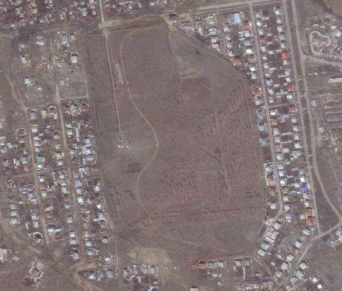 На месте светлого пятна [на спутниковом снимке], расположенного между трассой железной дороги и трассой аллеи, ведущей к памятнику с севера на юг, производилась посадка на поезд. Когда я на нём катался (кажется, в 1978 году, но точно не помню), там было несколько деревянных помостов со ступеньками; поезд, прибывая на «станцию», пытался остановиться так, чтобы двери вагонов были напротив этих помостов. Пацаны ещё только учились, и поездка была памятна рывками и резкими торможениями.