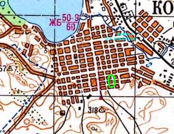Район местонахождения узкоколейной железной дороги на топографической карте