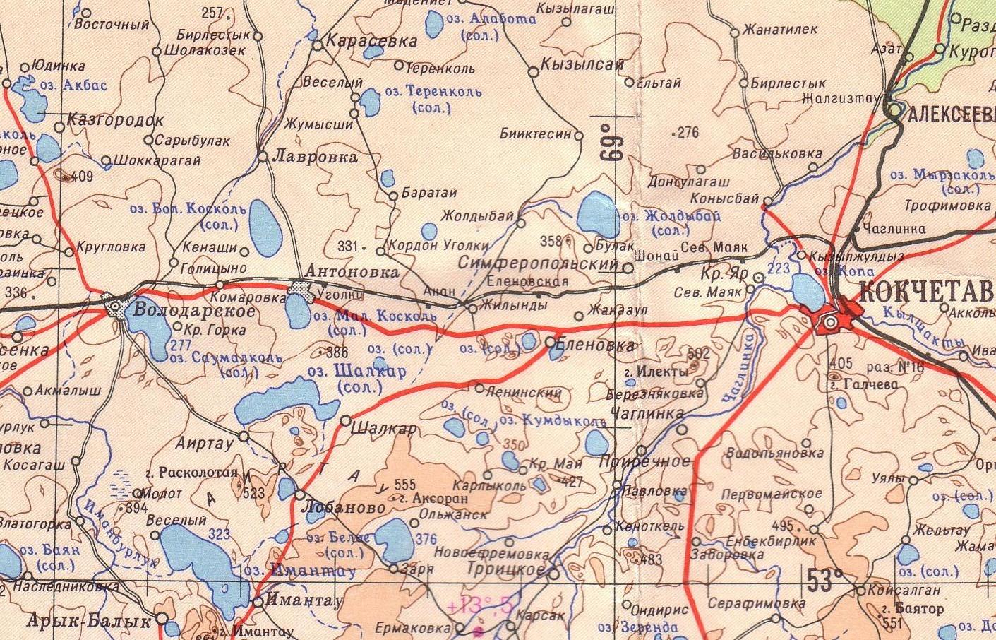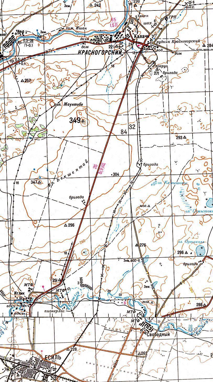 карте масштаба 1:200 000, изданной в 1986 году. На топографической карте масштаба 1:200 000, изданной в 1980-х годах, обозначена узкоколейная железная дорога вблизи города Кокчетав (Кокшетау). Возможно, узкоколейная железная дорога обслуживала Кокчетавский кирпичный завод №2.